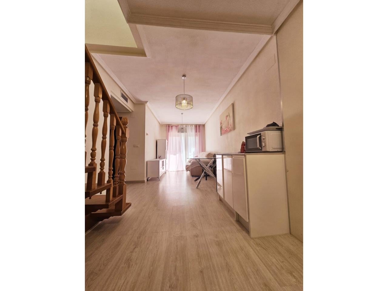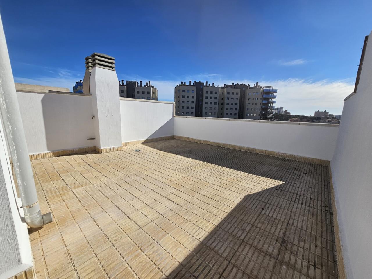 DescripciónAtico duplex. Se trata de una vivienda, con muchas posibilidades. Cuenta con 70 m2 construidos mas terraza/altillo de 30 m2. Dispone de 1 habitación doble, 1 habitación individual, 1 aseo y 1 baño, aire acondicionado por conductos, suelos de parquet, plaza de parking. Urbanización privada con zonas comunes y piscina comunitaria. Cerca a todos los servicios, tales como: su per mercados, parada del tren, parada de autobús y farmacias. Además puedes llegar andando a la playa que se encuentra a 200 metros.
