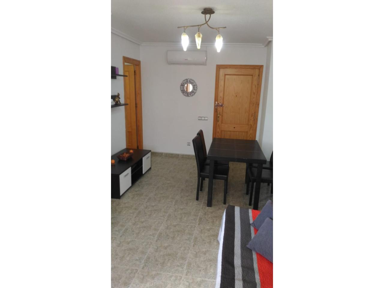DescripciónLa Mata Torrevieja. Distancia a playa 50 metros. Apartamento de 67 m2, distribuido en 1 habitación doble, 1 habitación individual, 1 baño, salón comedor, cocina equipada y balcón. Aire acondicionado. Cerca a todos los servicios.